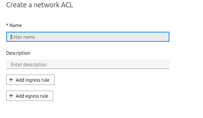 ACLs have no rules upon creation via command line, so as a next step, add rules to the ACL. You can also edit the ACL configuration, or assign the ACL to a network or NIC.