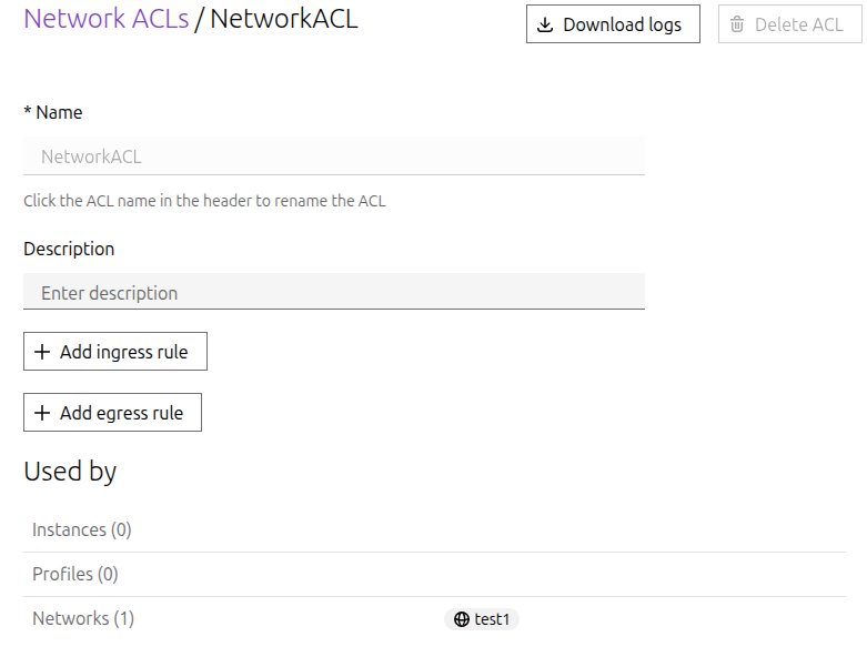 To edit an ACL, navigate to its detail page. From here, you can add or remove ingress or egress rules, as well as configure other settings.