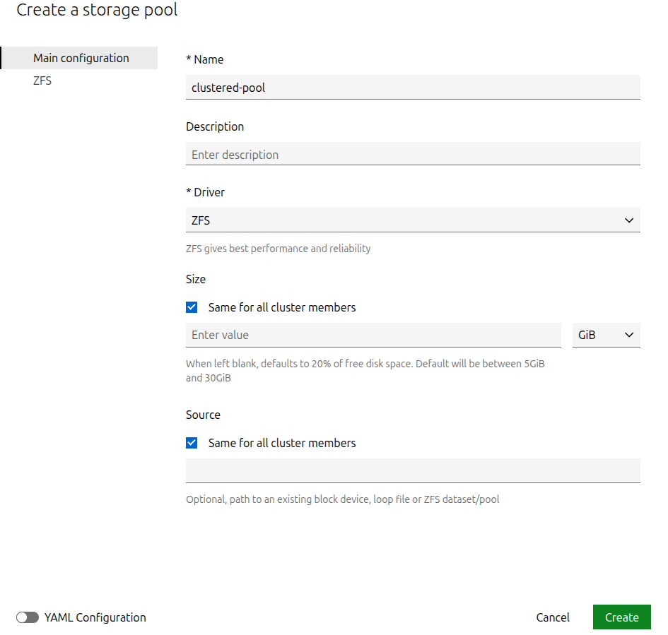 If your LXD server is clustered, such as in a MicroCloud deployment, see: Create a storage pool in a cluster.